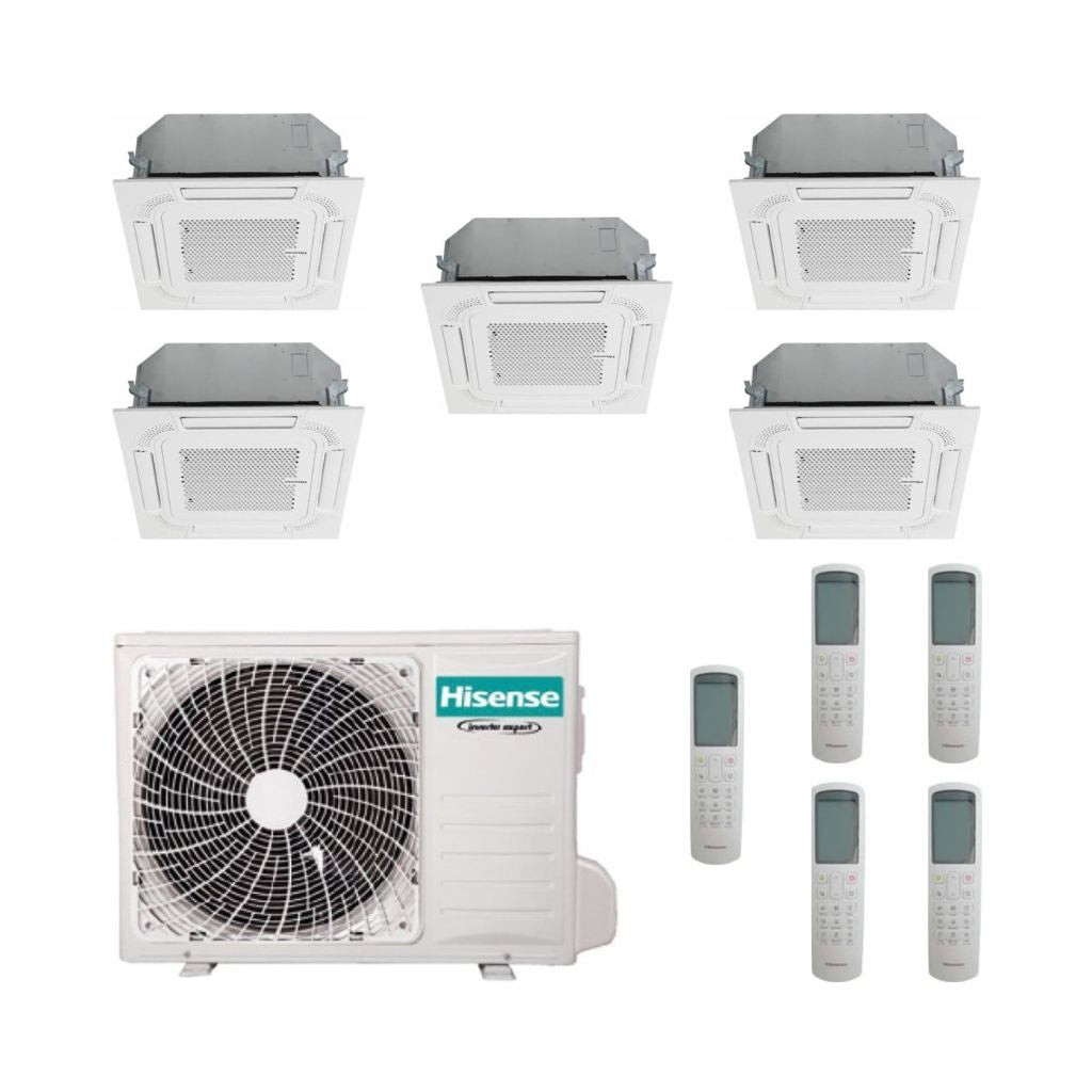 Hisense Climatizzatore Penta Split a Cassetta con 5AMW125U4RTA - Gas R-32 Inverter A++/A+ Wi-Fi Optional con Telecomando e Pannello incluso
